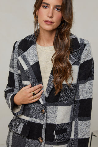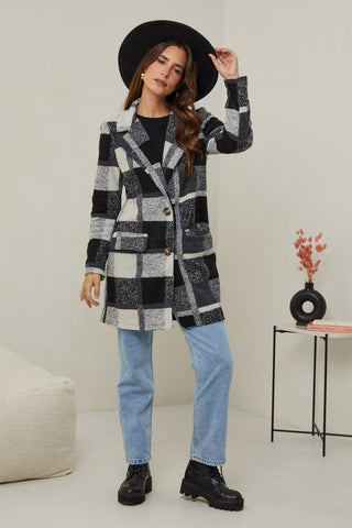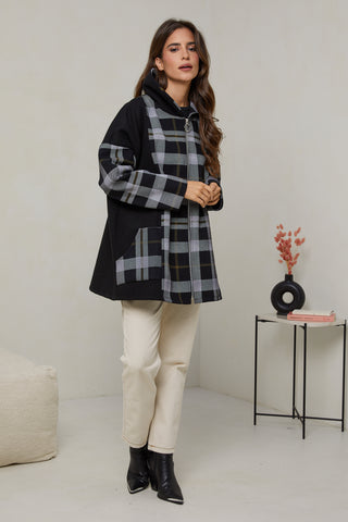 100087Manteau long à motif carreaux, col chemise ferm...Manteau long à motif carreaux, col chemise fermeture à 4 boutons avec deux poches sur les côtés€199,00