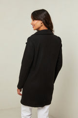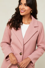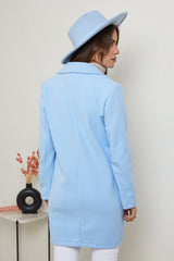 Manteau mi-long, col cranté rabattu, fermeture à deux boutons, deux poches sur les côtés