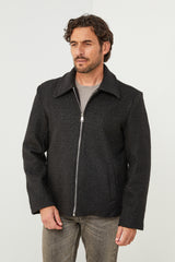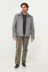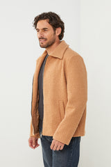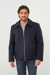 Description : Manteau caban court, col rabat, fermeture à 6 boutons avec deux poches à l'avant et un detaille de trois boutons au niveau des manches