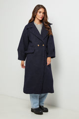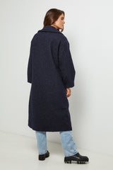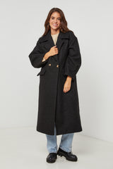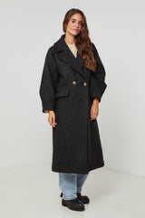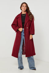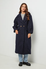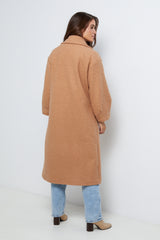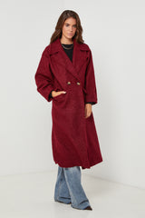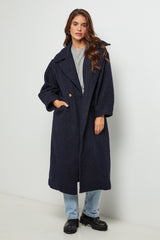 Manteau long à tissu bouclette, col rabattu, fermeture à 6 boutons et deux poches sur les côtés