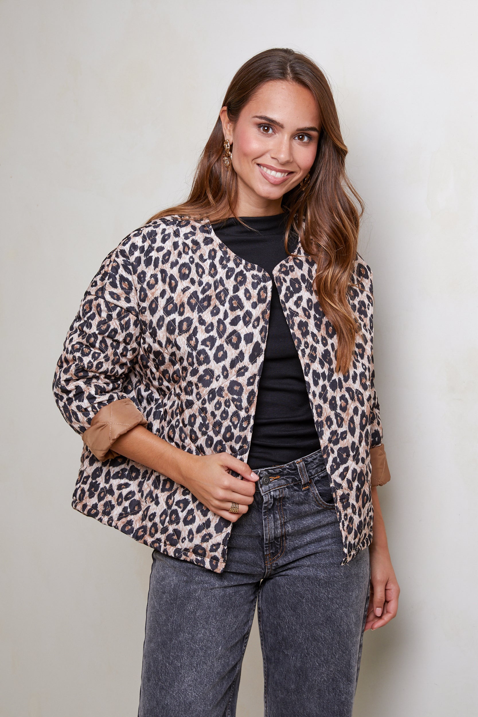 Description : Manteau caban court, col rabat, fermeture à 6 boutons avec deux poches à l'avant et un detaille de trois boutons au niveau des manches Veste à motif léopard matelassée courte avec doublure léopard Composition : 100% POLYSTER Mode de Lavage : Laver en dessous de 30 ° C, Ne...