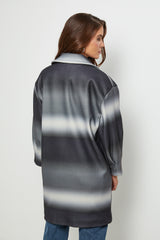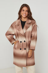 Manteau mi long à rayure col rabat fermeture à quatre boutons et deux poches à l'avant