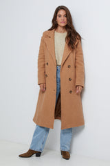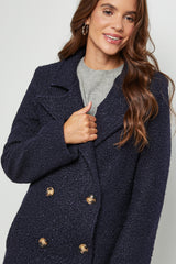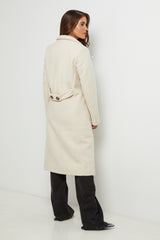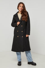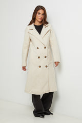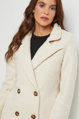 Manteau long à tissu bouclette, col rabattu, fermeture à 6 boutons et deux poches sur les côtés