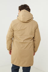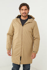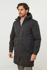 Doudoune long à capuche, col montant, fermeture éclaire et deux poches sur les côtés avec fermeture zippé