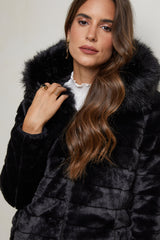 Doudoune/fausse fourrure courte, réversible à capuche avec un fausse fourrure détachable, fermeture éclaire avec deux poches sur les cotés